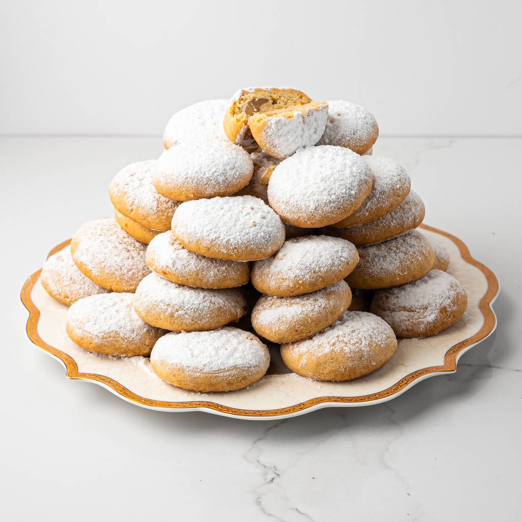 What sets El Forn El Masry’s Kahk Malban apart is the meticulous attention to detail in every step of preparation. Each cookie is handcrafted using a treasured family recipe passed down through generations, creating the perfect balance of buttery, melt-in-your-mouth texture and delicate sweetness. The outer shell achieves the ideal firmness to hold its shape while remaining tender, and the generous dusting of powdered sugar creates that instantly recognizable festive appearance that signals the arrival of Eid.